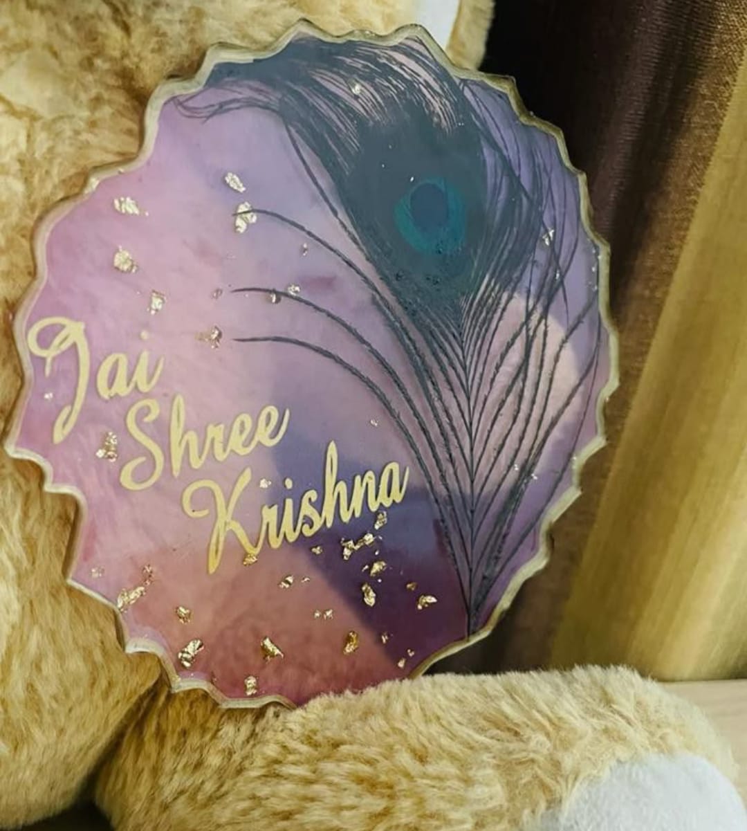 Krishna peacock feather Resin Pooja Thali - 6 INCH