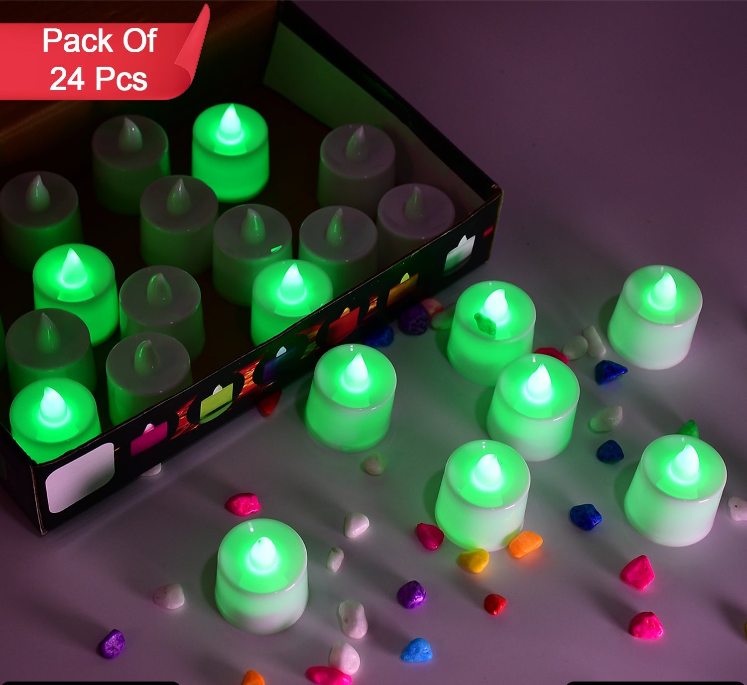 Green Flameless Led Tealights Smokeless Plastic Decorative Candles - Led Tea Light Candle For Home Decoration (Pack Of 24)