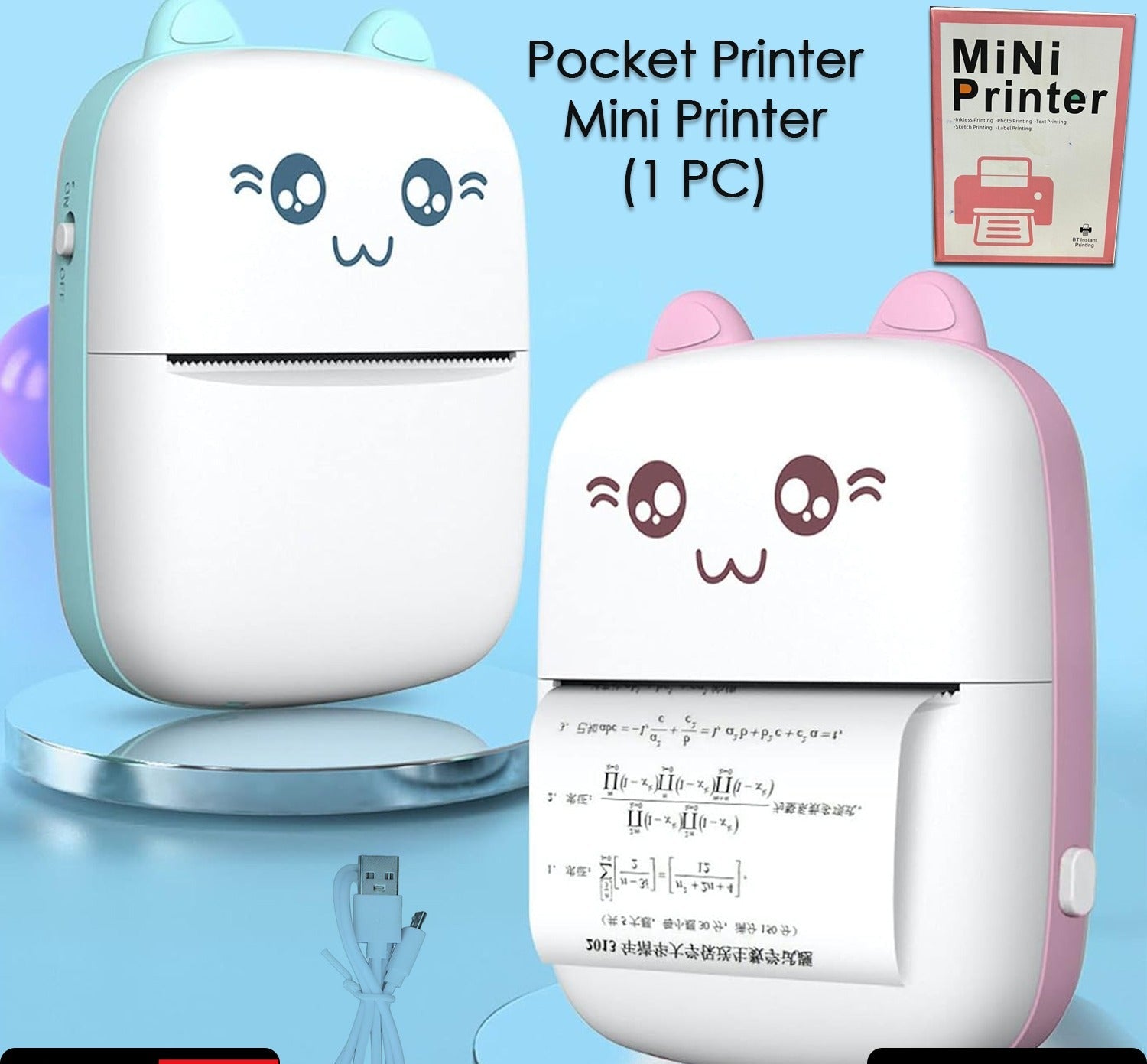 Pocket Mini Printer, Mobile Phone Bluetooth Connection Wireless Mini Thermal Printer with Android or iOS APP for Pictures, Portable Smart Printer,Contains 1 Rolls Thermal Paper, with Fast Paper Output for Photo Image